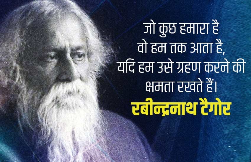 Rabindranath Tagore Jayanti 2020 Images, Quotes, Messages: रवींद्रनाथ टैगोर एक प्रसिद्ध भारतीय कवि थे। इसके अलावा, वह एक महान दार्शनिक, देशभक्त और चित्रकार भी थे। लोग अक्सर उनके लिए गुरुदेव शब्द का उपयोग करते थे। इस असाधारण व्यक्तित्व का जन्म 7 मई 1861 में कलकत्ता में हुआ था। उनकी प्रारंभिक शिक्षा विभिन्न प्रकार के शिक्षकों द्वारा घर पर हुई। साथ ही, इस शिक्षा के माध्यम से, उन्होंने कई विषयों का ज्ञान प्राप्त किया। उनकी उच्च शिक्षा इंग्लैंड में हुई। इन सबसे ऊपर, रवींद्रनाथ टैगोर ने बहुत कम उम्र से कविताएं लिखना शुरू कर दिया था। रवींद्रनाथ टैगोर ने सोलह साल की उम्र से नाटक लिखना शुरू कर दिया था। बीस साल की उम्र में, रवींद्रनाथ टैगोर ने मूल नाट्य कृति वाल्मीकि प्रतिभा लिखी। रवींद्रनाथ टैगोर की जयंती के खास मौके पर आप सोशल मीडिया के जरिए अपने दोस्तों और रिश्तेदारों को मैसेज और कोट्स भेजकर उन्हें शुभकामनाएं दे सकते हैं।