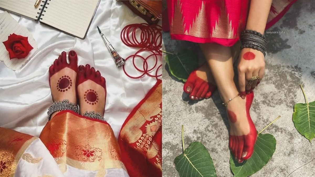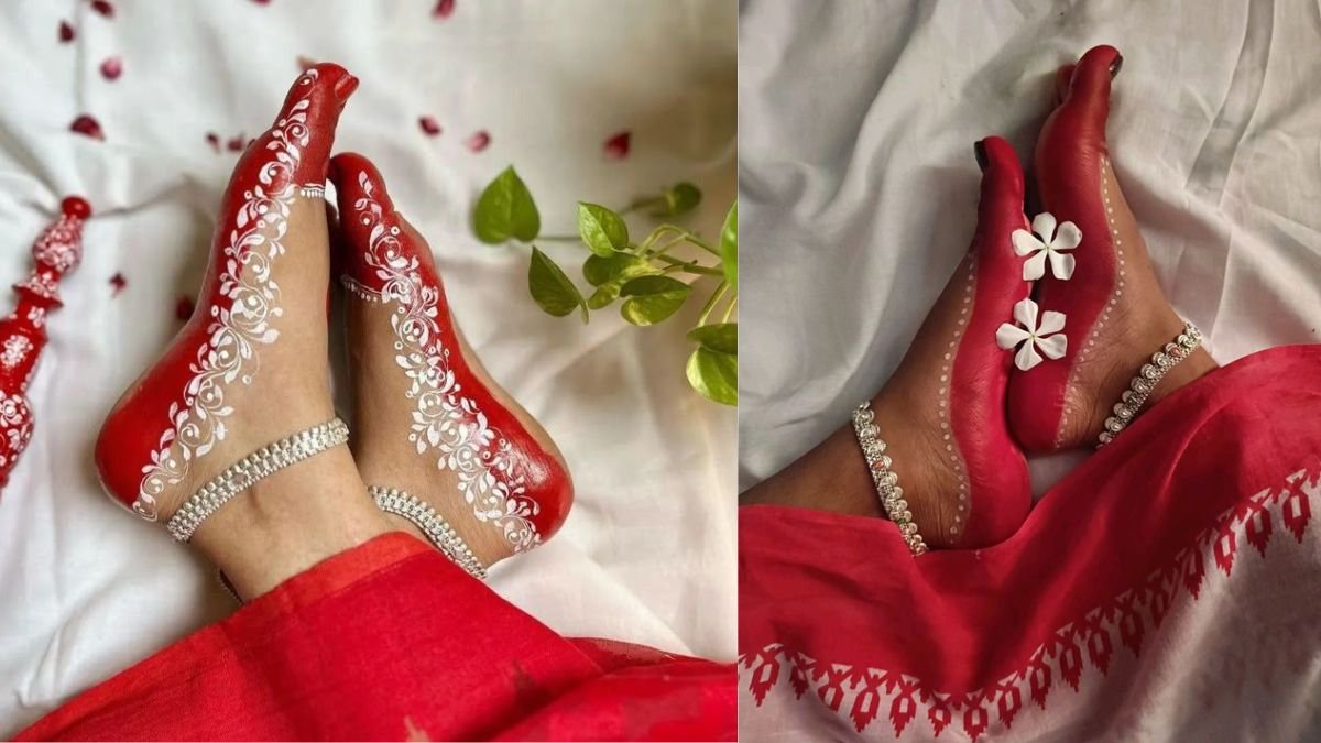 बंगाल में आलता लगाने का चलन काफी पुराना है। इसे महिलाएं शादी-ब्याह से लेकर तीज-त्योहार तक अपने पैरों में लगाती हैं। हरतालिका तीज पर यदि आप बंगाली टच पाना चाहती हैं, तो इस आलता डिजाइन को ट्राई कर सकती हैं।