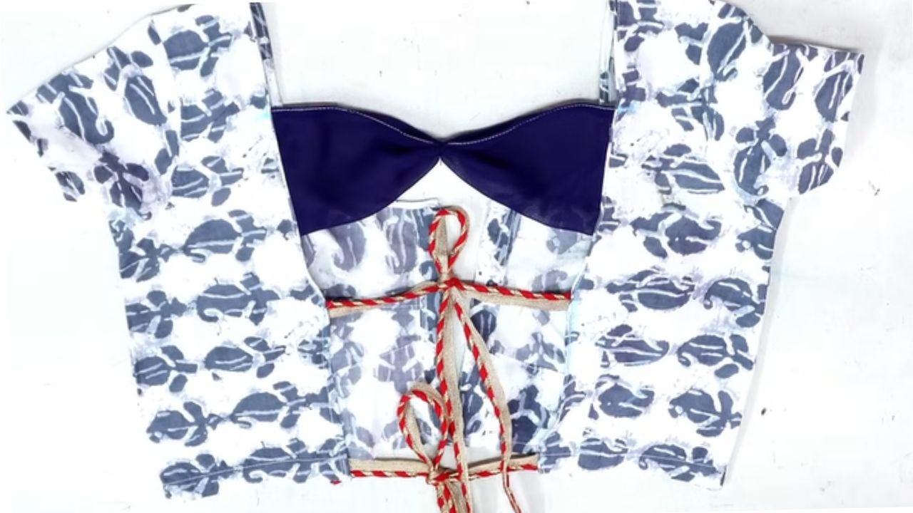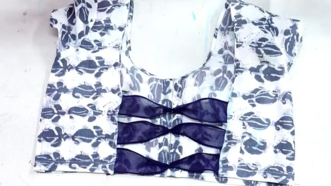 सबसे पहले ब्लाउज को उल्टा पलट कर बिछा लें। फिर गले का नाप लें। अगर आपका ब्लाउज सिर्फ नीचे की तरफ यानी कमर की साइड टाइट है तो नीचे दी गई डॉट वाली सिलाई को खोल दें। इससे वो लूज हो जाएगा। इससे आपको करीब 2 इंच का मॉर्जिन मिलेगा। अगर आपका ब्लाउज हर जगह से टाइट है तो स्केल को गले से नीचे की तरफ सीधा रखकर निशान लगाएं। फिर इसे नीच से कट कर दें। इसमें लगाने के लिए आप साड़ी से थोड़ा कपड़ा निकाल सकते हैं। अगर ये नहीं करना चाहते हैं तो ब्लाउज से मैचिंग कपड़ा लें। इसे मोड़कर दोनों तरफ की गई कटिंग से जोड़ दें। इसे जोड़ने के लिए आप दो या तीन पट्टी बनाएं।