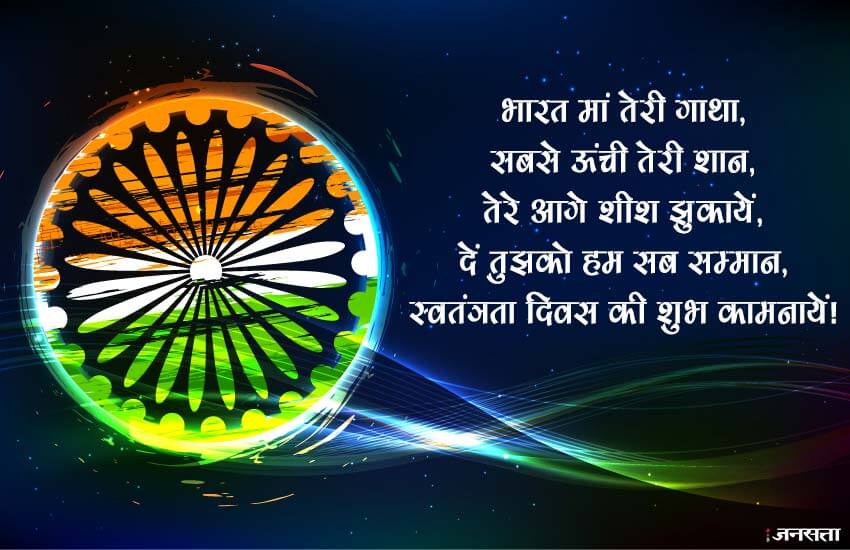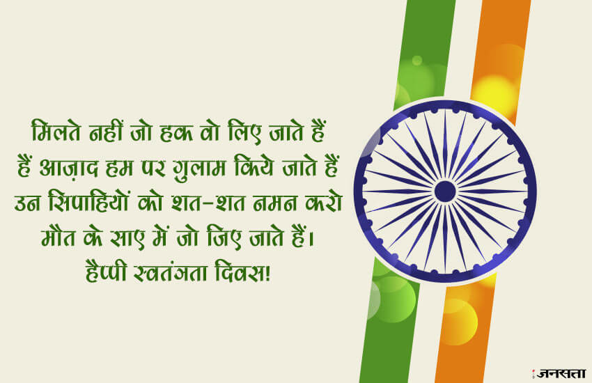 वहीं स्वतंत्रता दिवस पर सोशल मीडिया यूजर्स अलग-अलग तरीके से एक-दूसरे को विश करते हैं। आप भी खास अंदाज में अपने दोस्तों संग स्वतंत्रता दिवस सेलिब्रेट कर सकते हैं। यहां हम आपको आपके फेसबुक या व्हाट्सएप स्टेटस को सबसे यूनीक बनाने में आपकी मदद कर रहे हैं। आप इन मैसेजेज और स्टेटस के जरिए अपने करीबियों संग यह राष्ट्रीय पर्व सेलिब्रेट कर सकते हैं-
