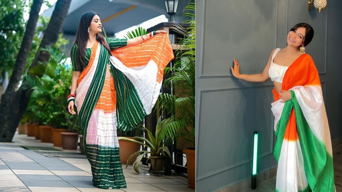 Independence Day dress for woman Tricolor: भारत आज अपना 79वां स्वतंत्रता दिवस पूरे उत्साह और देशभक्ति के साथ मना रहा है। इस मौके पर स्कूलों, कॉलेजों, सरकारी और निजी संस्थानों में ध्वजारोहण और सांस्कृतिक कार्यक्रमों का आयोजन हो रहा है। लोग तिरंगे के रंगों में सज-धज कर इस खास दिन को सेलिब्रेट कर रहे हैं। ऐसे में, अगर आप भीड़ में सबसे अलग और स्टाइलिश दिखना चाहती हैं, तो अपने लुक में देशभक्ति का ट्विस्ट जरूर जोड़ें।