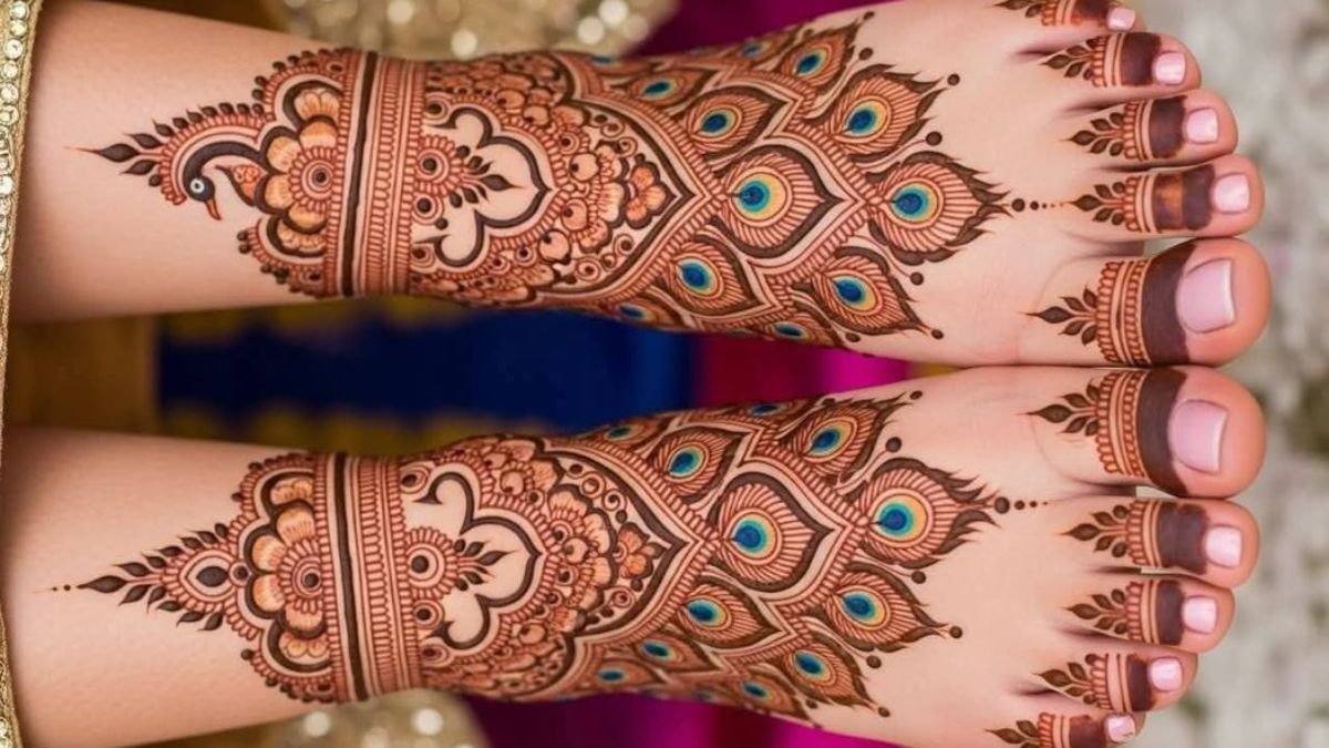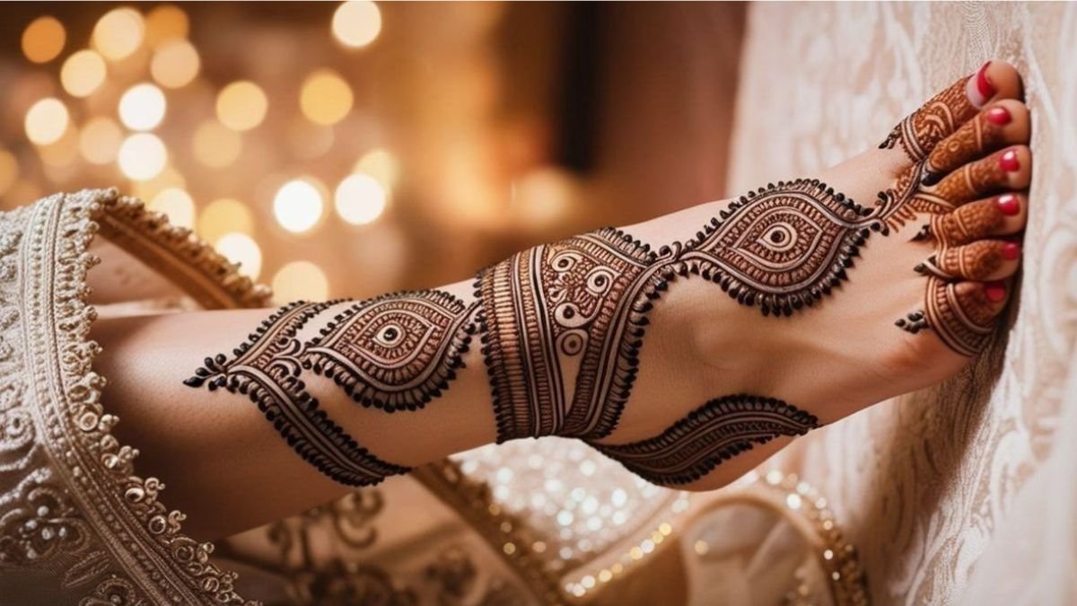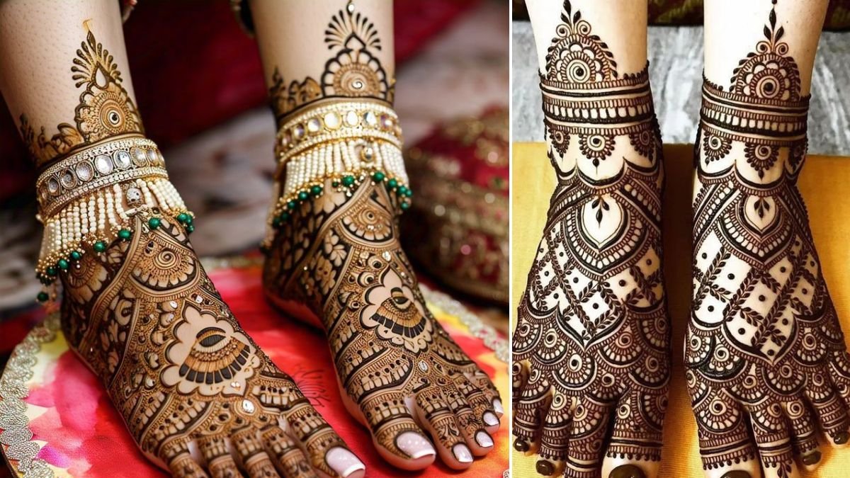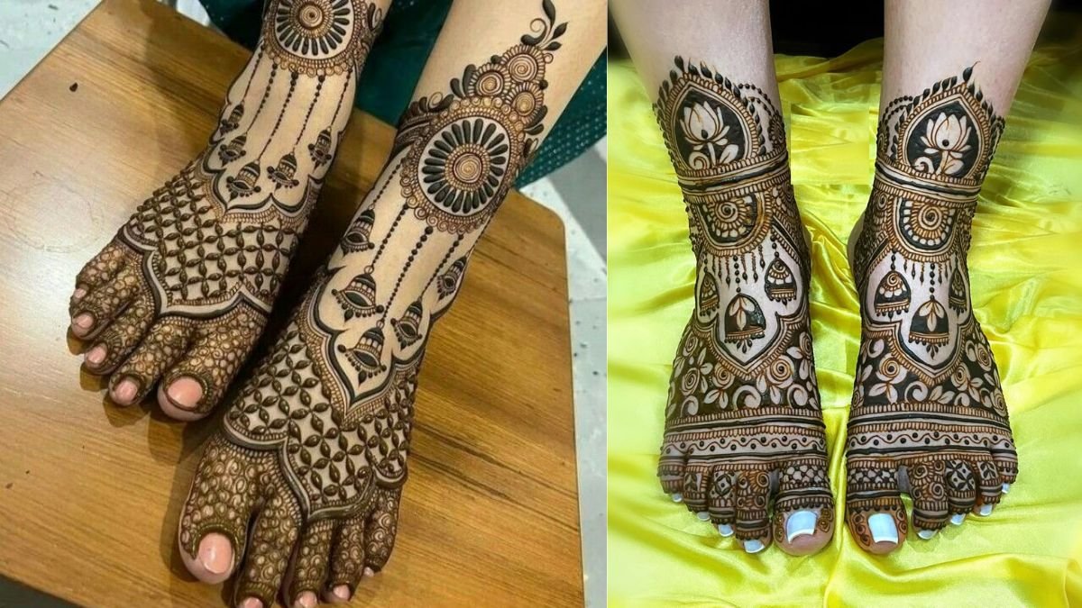 पायल पैटर्न मेहंदी डिजाइन छोटे पैरों के लिए परफेक्ट रहेगा। इसमें सिंपल डिजाइन पैरों पर बनाई जाती है।