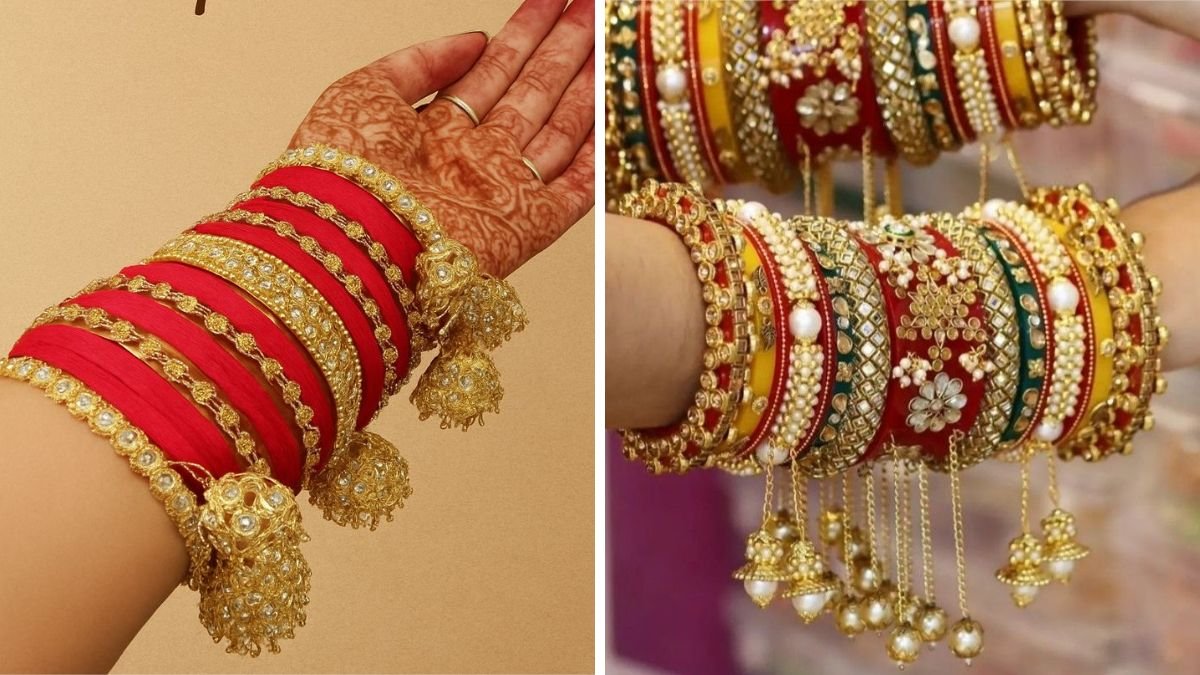 दरअसल, करवा चौथ के मौके पर महिलाएं अपने लुक को परफेक्ट बनाने में कोई कसर नहीं छोड़ती हैं। इस दिन वे साड़ी, लहंगे और ज्वेलरी के साथ तैयार होती हैं। ऐसे में आप भी करवा चौथ पर कुछ फैंसी बैंगल्स डिजाइन्स को ट्राई कर सकती हैं। इससे आपके पारंपरिक लुक में चार चांद लग सकते हैं।