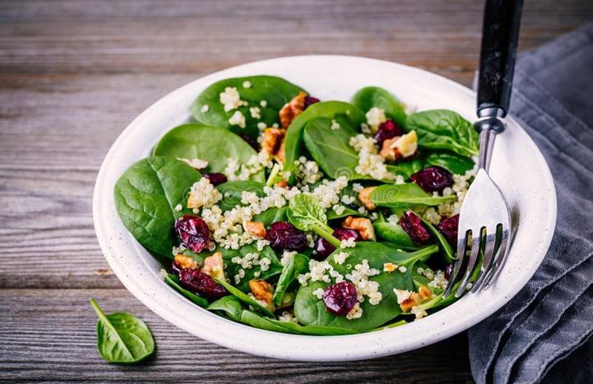 सर्दियों के मौसम में खानपान का खास ख्याल रखना जरूरी होता है। क्योंकि इन दिनों तापमान कम रहता है जिसकी वजह से छोटी सी फ्लू या कोई दूसरा इन्फेक्शन का कारण बन सकती है। इसलिए टेस्ट के साथ हेल्थ का ध्यान रखकर ही भोजन करें। चलिए आज हम आपको ग्रीन क्विनोआ सलाद के बारे में बता रहे हैं जो स्वाद के साथ-साथ सेहत के लिए परफेक्ट है। क्विनोआ को सूपरफूड कहा जाता है, जिसे हम बथूआ के नाम से भी जानते हैं। इसकी खेती कम पानी वाली जगह पर भी की जा सकती है। यह न सिर्फ हेल्थ बल्कि स्किन के लिए भी फायदेमंद होता है। आइए जानते हैं ग्रीन क्विनोआ सलाद बनाने की प्रक्रिया और इसके फायदे।