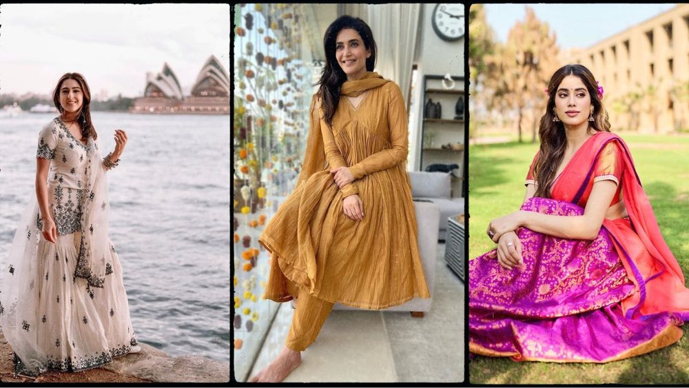 इन सब से अलग आप सारा अली खान की तरह शरारा सूट भी पहन सकती हैं। ये फिट भी जन्माष्टमी की पूजा के समय खूब जचने वाला है।