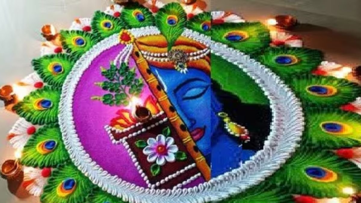 देवउठनी एकादशी पर आप कान्हा, मुरली और मोरपंख वाली रंगोली बना सकते हैं।