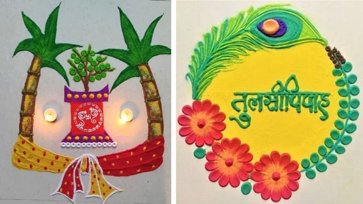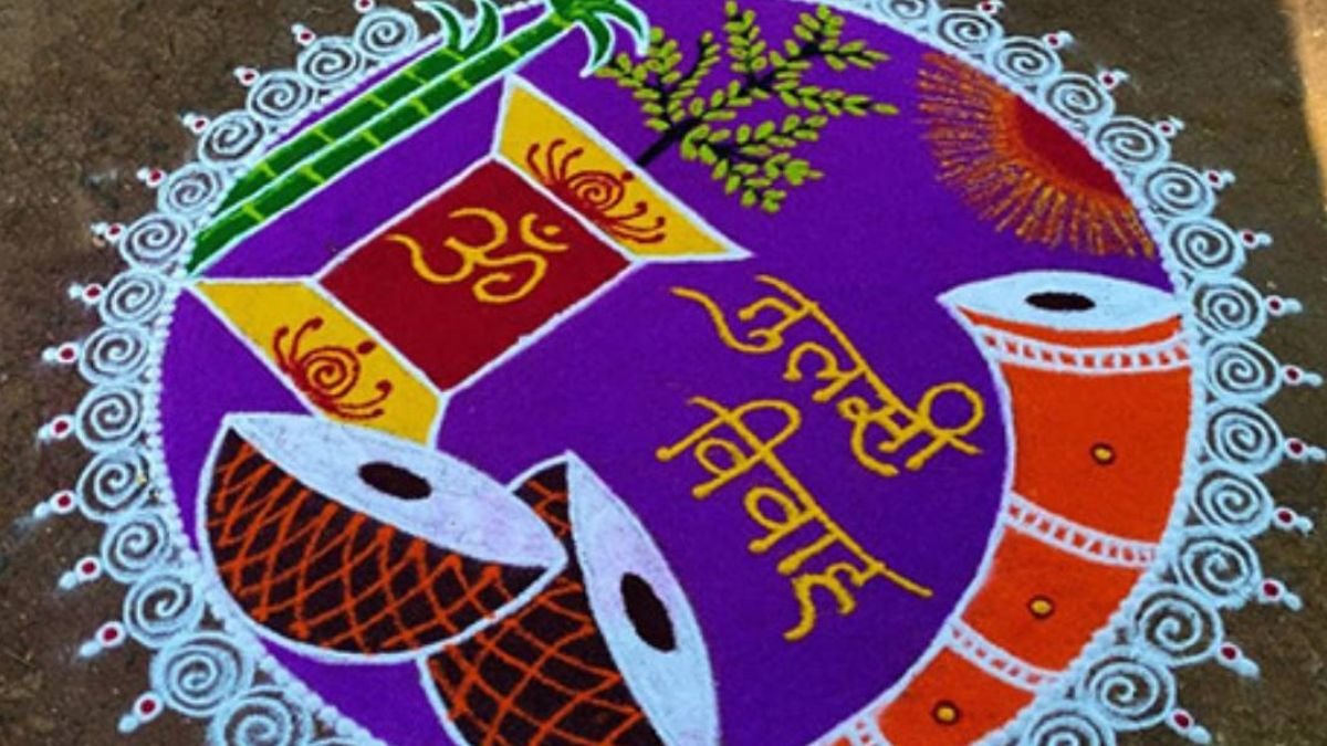 तुसली विवाह के शुभ मौके पर आप ऐसी सुंदर रंगोली से आंगन सजा सकते हैं।