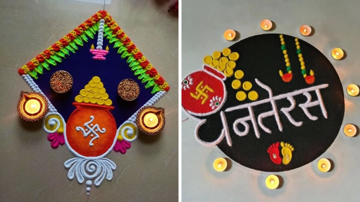 धनतेरस से ही दिवाली की आधिकारिक शुरुआत हो जाती है। इस दिन लोग घरों की साफ-सफाई के साथ मां लक्ष्मी और भगवान धन्वंतरि की पूजा करते हैं। इस दिन पूजा करने से घर में सुख, समृद्धि और बरकत बनी रहती है। वहीं, इस खास मौके पर रंगोली बनाने की भी परंपरा है। ऐसे में हम आपके लिए कुछ खास तरह के रंगोली डिजाइन लेकर आए हैं, जिन्हें आप लास्ट मिनट में बना सकते हैं।