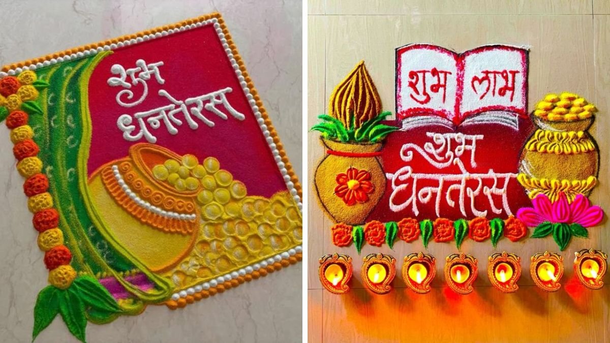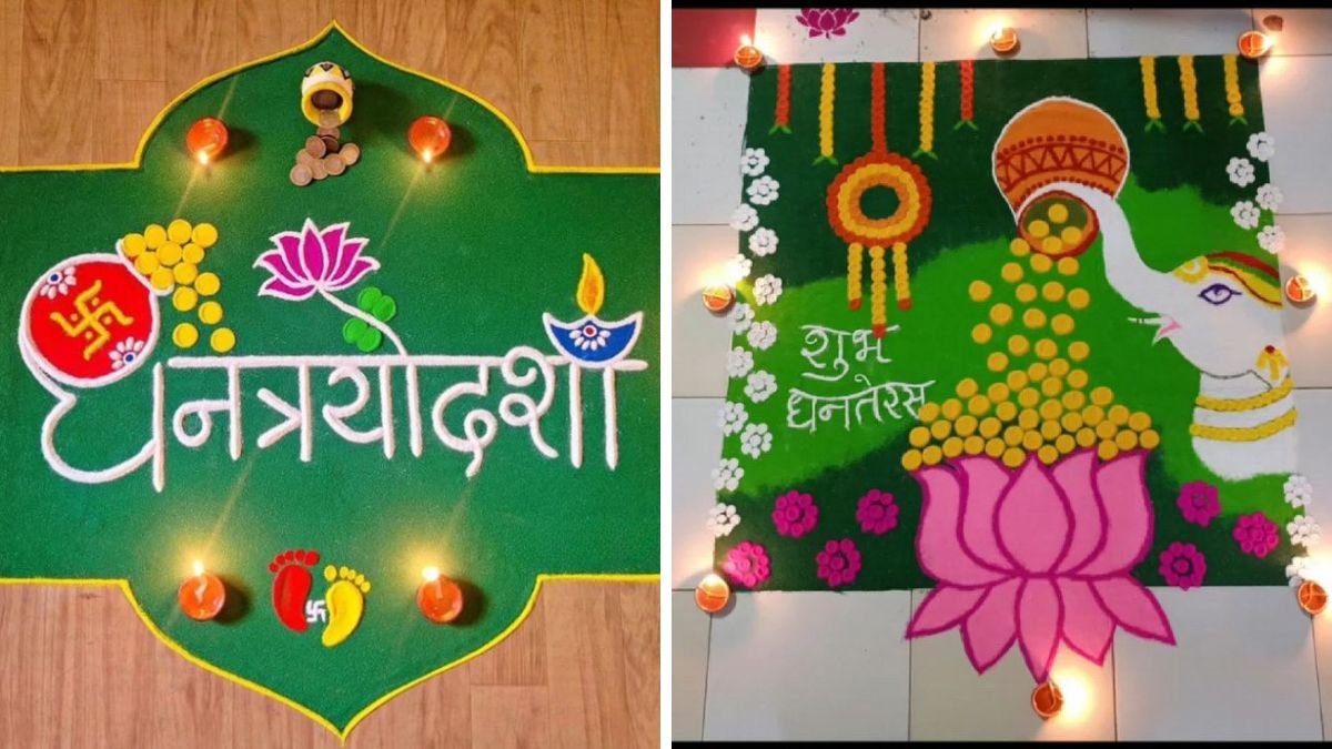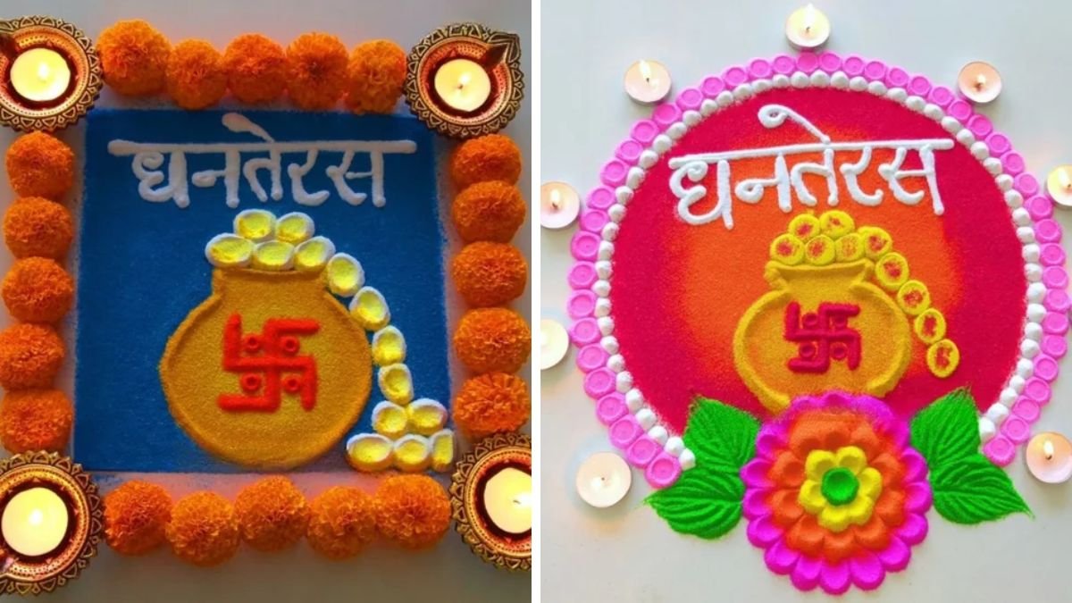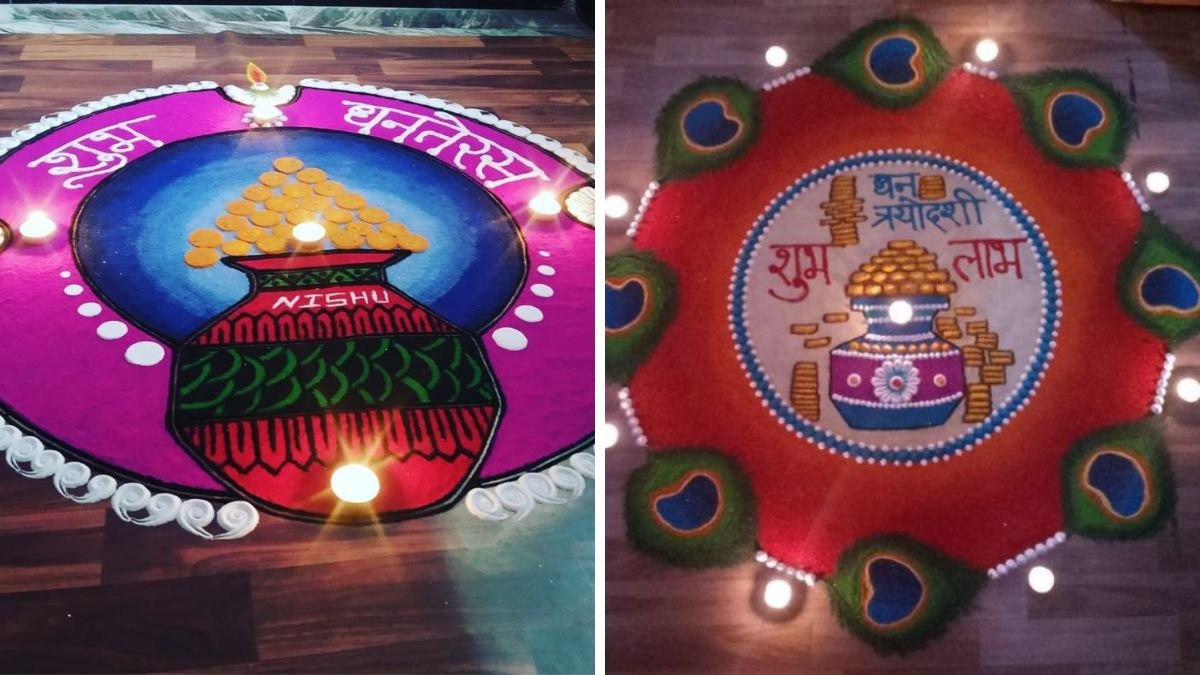Dhanteras Rangoli Design 2025: पूरे देश में धनतेरस का त्योहार धूमधाम से मनाया जा रहा है। धनतेरस का त्योहार हर साल कार्तिक मास के कृष्ण पक्ष की त्रयोदशी तिथि पर मनाया जाता है। शास्त्रों के अनुसार, इस दिन समुद्र मंथन के दौरान भगवान धन्वंतरि अमृत कलश लेकर प्रकट हुए थे।