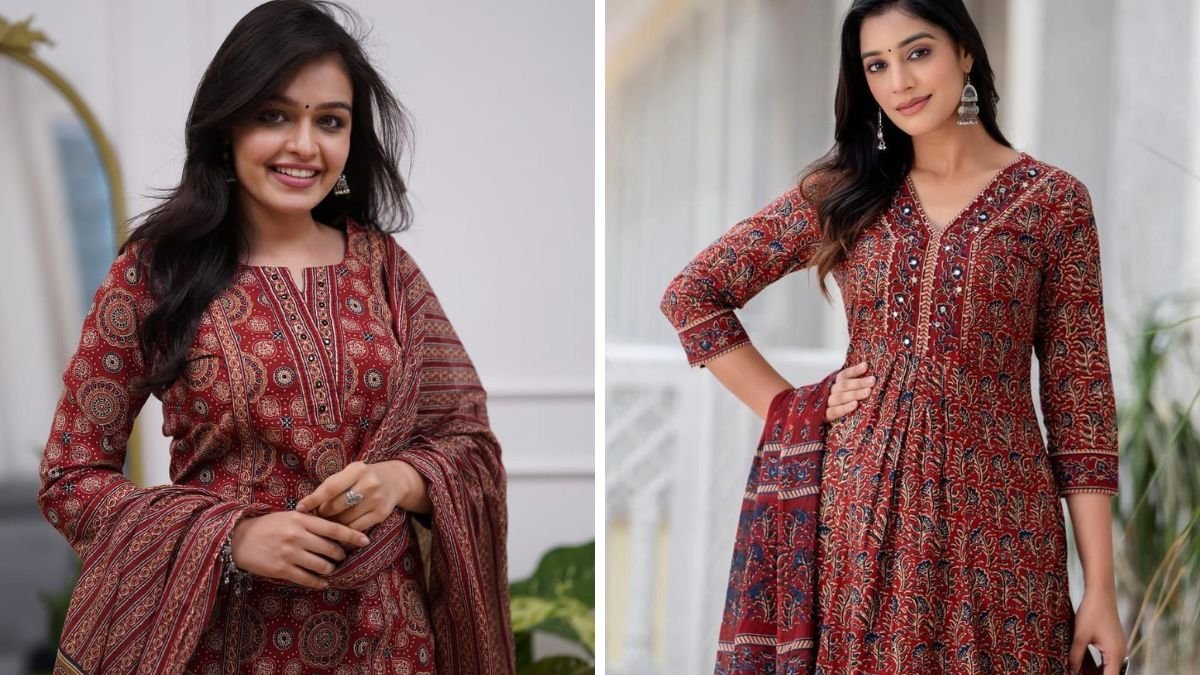 त्योहारों के लिए आप इस तरह की रेड ब्लॉक प्रिंट कुर्ती को आप ट्राई कर सकती हैं। पारंपरिक डिजाइन और हल्के फैब्रिक के कारण यह काफी आरामदायक भी होती है। इसे पहनने से लुक भी बेहतर लगता है। आप इसके साथ सिल्वर झुमके और हल्के मेकअप के साथ स्टाइल कर सकती हैं। यह दीवाली और अन्य फंक्शन के लिए परफेक्ट आउटफिट है।