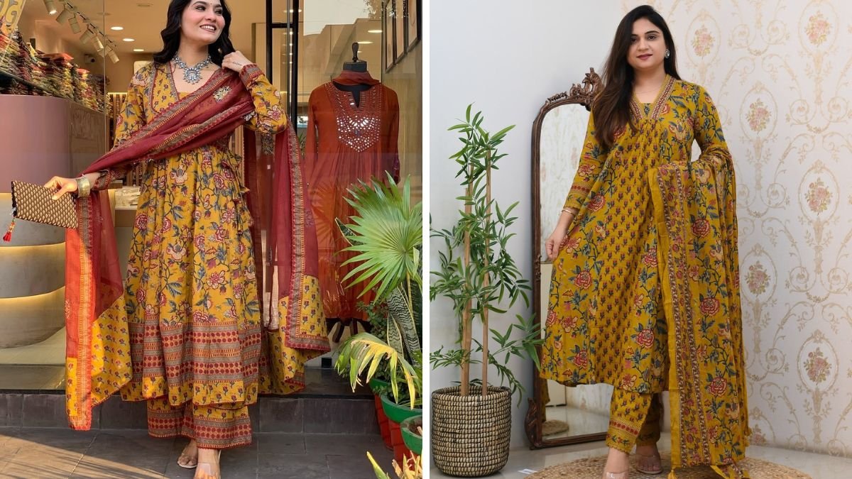 अगर आप कुछ हट कर ट्राई करना चाहती हैं, तो इस मस्टर्ड येलो कुर्ती डिजाइन पर विचार कर सकती हैं। फ्लोरल प्रिंट और कॉटन फैब्रिक इसे ग्रेसफुल बनाते हैं। इसके साथ आप मरून दुपट्टा को मैच कर सकती हैं। यह लुक को और भी बेहतर बनाएगा।