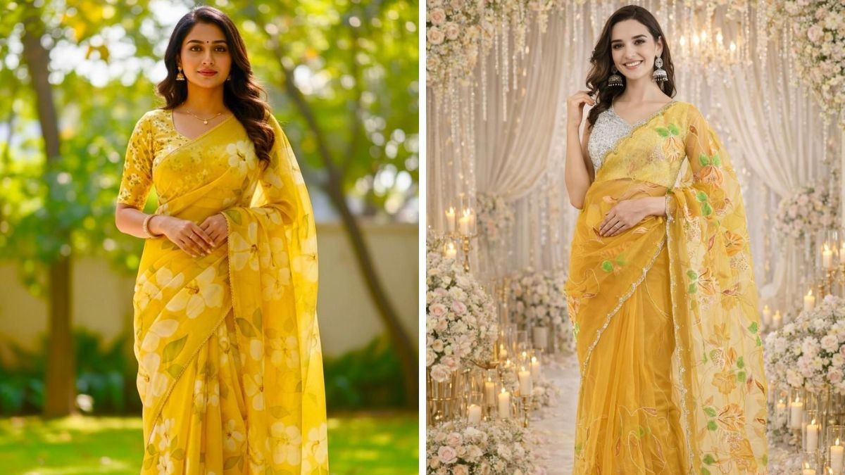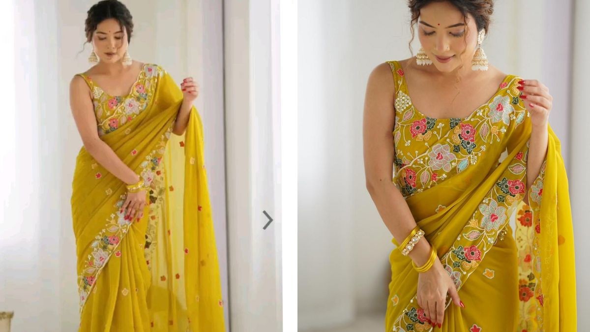 वहीं, महाशिवरात्रि के पावन पर्व पर महिलाएं पारंपरिक परिधान में तैयार होती हैं। ऐसे में अगर आप इस बार कुछ अलग और ट्रेंडी ट्राई करना चाहती हैं, तो फ्लोरल येलो साड़ी आपके लिए बेहतरीन ऑप्शन हो सकती है। पीला रंग आस्था और सकारात्मकता का प्रतीक माना जाता है, जबकि फ्लोरल डिजाइन आपके फेस्टिव लुक में स्टाइल का परफेक्ट तड़का लगा देता है।