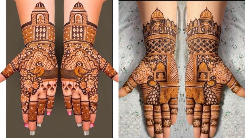 अगर आपको भरे हाथ की मेहंदी डिजाइन पसंद हैं तो आप दोनों हाथों इस तरह की डिजाइन बनवा सकती हैं। नई दुल्हन के लिए ये बेस्ट रहेंगी।