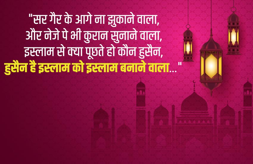 उन्हें इस्लाम के रक्षक का दर्जा भी दिया जाता है और दुनियाभर में मुहर्रम के दौरान उनकी शहादत को याद किया जाता है। खासकर शिया समुदाय के लोग 10 वें मुहर्रम के दिन काले कपड़े पहनकर हुसैन और उनके परिवार की शहादत को याद करते हैं। इमाम हुसैन की शहादत को याद करते हुए सड़कों पर जुलूस निकाला जाता है और मातम मनाया जाता है। इस साल मुहर्रम के मौके पर आप सोशल मीडिया के जरिए अपनों दोस्तों और रिश्तेदारों को कोट्स शेयर कर उन्हें इस दिन से जुड़ी तमाम महत्वपूर्ण बातों की जानकारी दे सकते हैं…