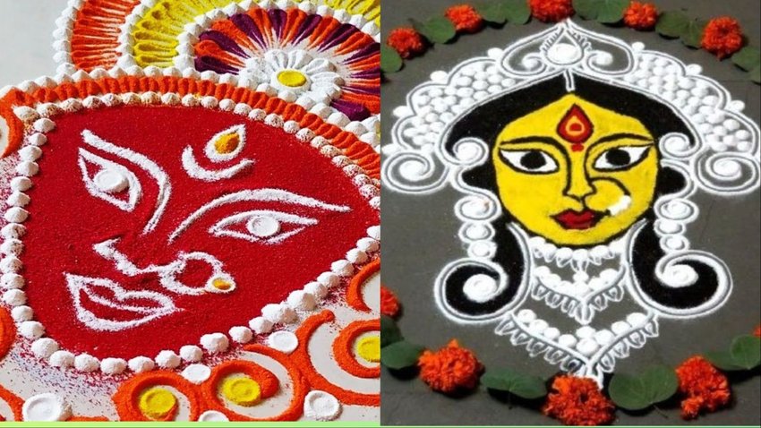 अंत में आप बंगाल की मां दुर्गा बनाकर भक्तों और अपने आस-पास के लोगों को दुर्गा पूजा की बधाई दे सकते हैं। इस प्रकार से आप नवरात्रि के 9 दिन ये 9 स्पेशल रंगोली डिजाइन ट्राई कर सकते हैं।