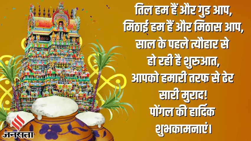 इस त्योहार के मौके पर घर आंगन को खूबसूरत तरीके से सजाया जाता है। घरों में रंगोली बनाई जाती है। महिलाएं पोंगल के पकवान बनाती हैं जिसमें मिट्टी के बर्तन में चावल और दूध को एक साथ उबालकर पकवान बनाया जाता है, जो सूर्य देव को दिया जाने वाला प्रसाद है। पोंगल के खास मौके पर आप भी अपने दोस्तों और साथियों को इस पर्व की बधाई देना चाहते हैं तो हम आपको कुछ खास मैसेज और कोट्स बता रहे हैं जिन्हें आप अपने दोस्तों और साथियों के साथ शेयर कर सकते हैं।