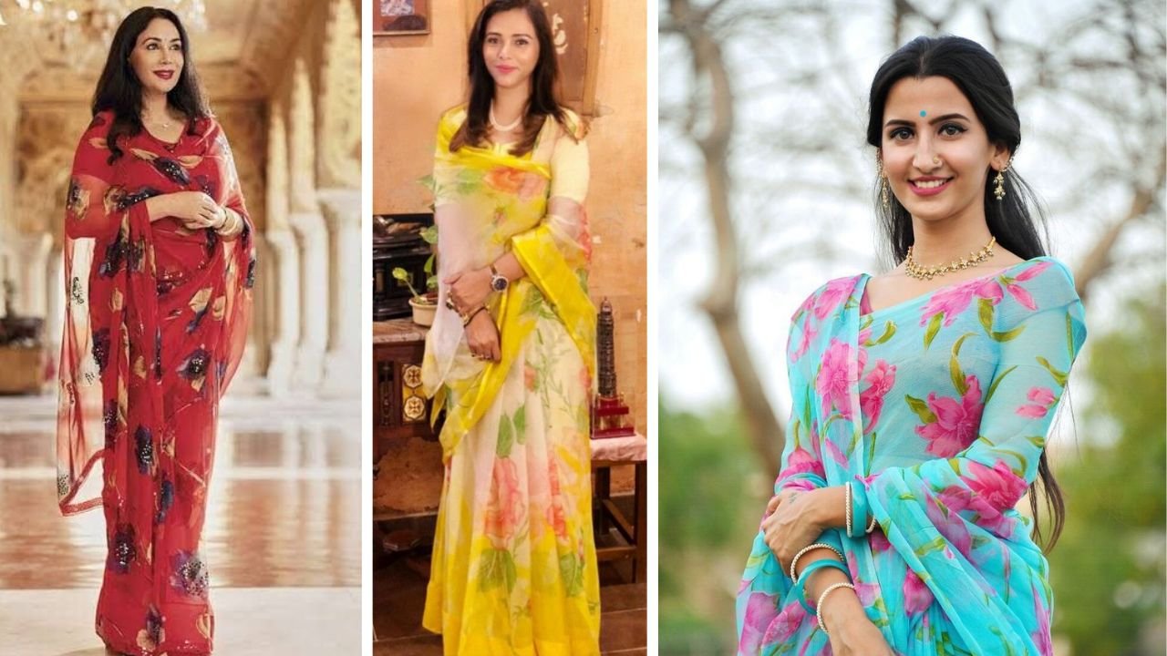 डिप्टी सीएम दीया कुमारी को अक्सर फ्लोरल शिफॉन साड़ी पहने देखा जाता है। आप भी अपने लिए ऐसी साड़ी खरीद सकती हैं। इसमें आपको एक से बढ़कर एक कलर ऑप्शन मिल जाएंगे। इसे आप ओपन पल्ला स्टाइल में ड्रेप करें। साथ में रॉयल कुंदन और पर्ल वाले नेकलेस पहनें। इससे आपको रॉयल लुक मिलेगा।