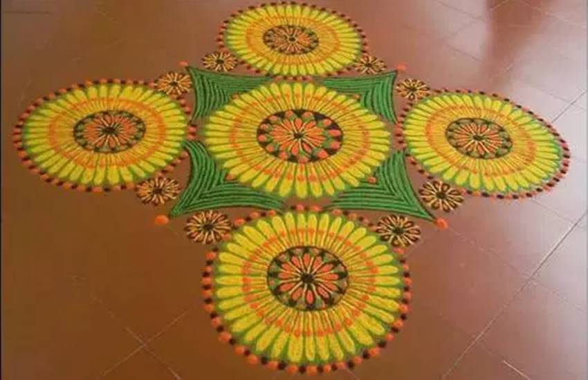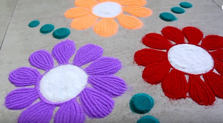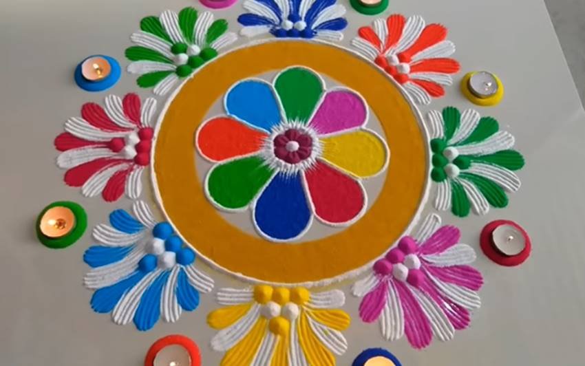 दिवाली में आप अपने घर पर यह फूलों वाली रंगोली भी बना सकते हैं। इसे बनाना दूसरों की तुलना में आसान है।