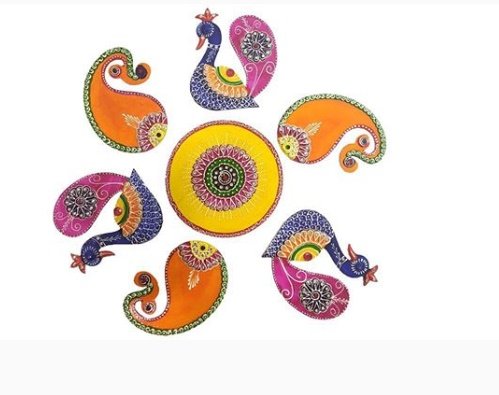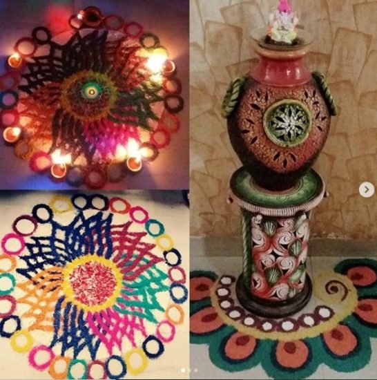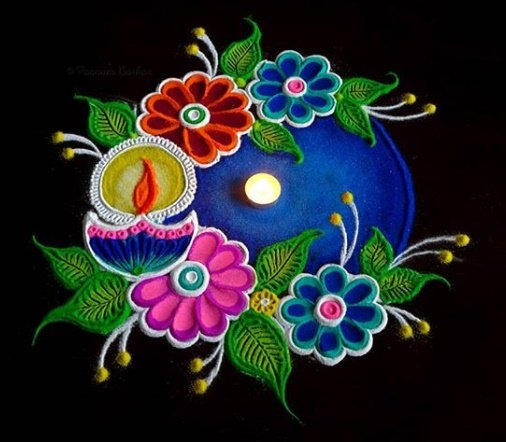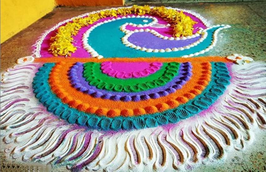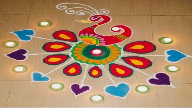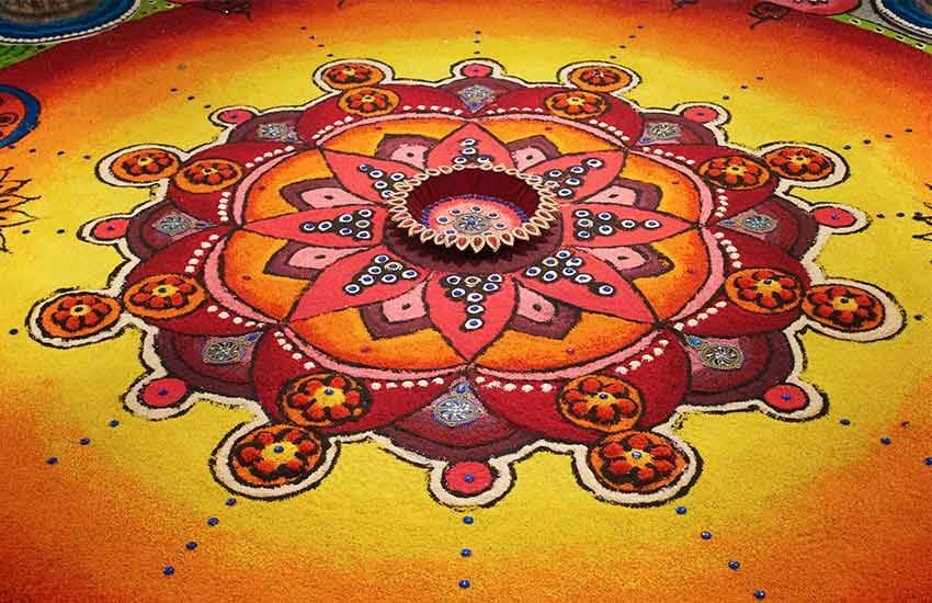 दिवाली रोशनी का त्योहार है। लोग इस त्योहार के जश्न में दीये, मोमबत्तियां, पठाखों के अलावा घरों, देहरी पर रंगोली भी बनाते हैं। रंगोली भारत की एक पारंपरिक कला है। रंगोली बनाने की प्रथा ना सिर्फ उत्तर भारत में है बल्कि देश के अन्य राज्यों में भी खासे प्रचलन में है। देश के अलग अलग हिस्सों में इस् अलग अलग नाम से जाना जाता है। बंगाल और असम में इसे अल्पना कहते हैं। तमिलनाडु में इसे कोलम नाम से जाना जाता है। आंध्र प्रदेश में इसे मुगुल्लू कहते हैं। छत्तीसगढ़ में इसे चौकपूर्णा कहते हैं। केरल में ओणम के त्योहार में फूलों से रंगोली बनाई जाती है जिसे पूकालम कहते हैं।