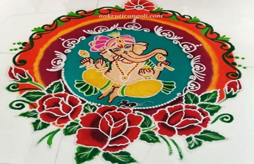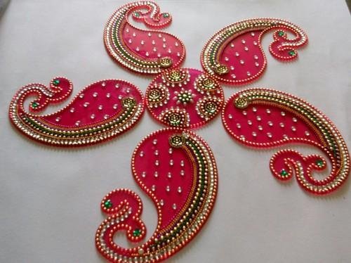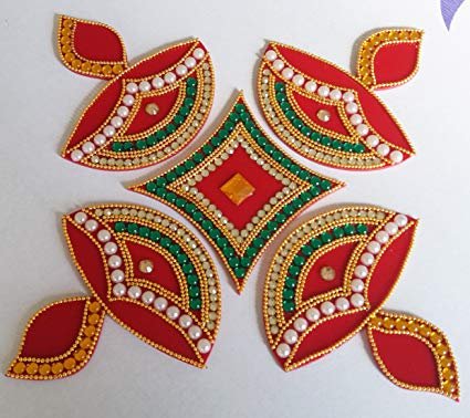 यह सिर्फ रंगों की रंगोली नहीं है। इस रंगोली में कुंदन का भी इस्तेमाल किया गया है। इस रंगोली को बनाने के लिए आपको काफी बारीकी से चीजों को देखने की जरूरत है।