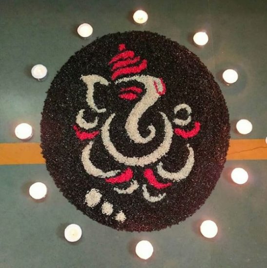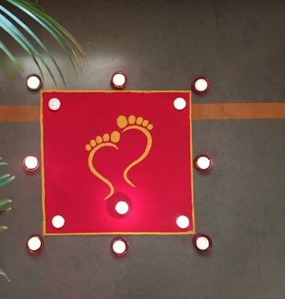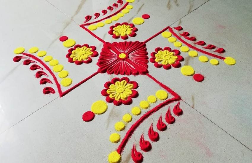 इस रंगोली को आप अपने घर के कॉर्नर या फिर किसी शो पीस के पास बना सकते हैं। इसे बनाना काफी आसान होता है।