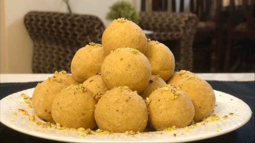 -गैस ऑफ करें और फिर हल्का ठंडा होते ही हाथों में घी लगाकर लड्डू बनाना शुरू करें।