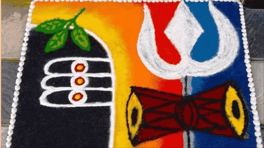 आटा, कुमकुम और हल्दी से बनाएं शिव रंगोली