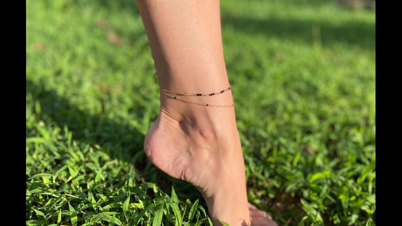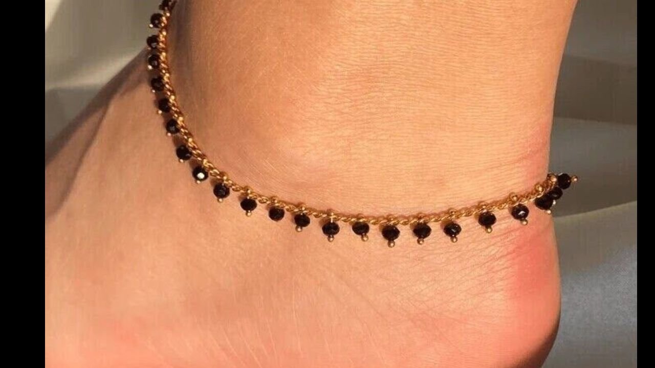 पैरों की सुंदरता को बढ़ाने के लिए आप इस तरह के Gold Plated Ankle Bracelet भी पहन सकते हैं। इसमें गोल्ड प्लेटेड चैन के साथ काले रंग के मोती जोड़े जाते हैं।