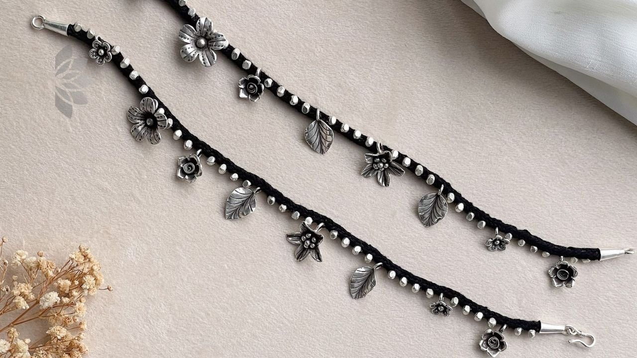 Silver Black Beads Anklet: आजकल बहुत सारी लड़कियां पैरों में काला बांधे नजर आ जाती हैं। कोई इसे फैशन तो कोई धार्मिक प्रवृत्ति की वजह से इसे पैरों में बांधता है। इसे लेकर तरह-तरह की मान्यताएं हैं। कोई बचपन से तो कोई एक-दूसरे को देखा-देखी इसे बांधने लगता है। अगर आप भी इनमें से एक हैं तो काले धागे की बजाए इस बार आप पैरों में स्टाइलिश सिल्वर ब्लैक बीड्स एनक्लेट ट्राई कर सकते हैं। इससे आपके गोरे-गोरे की सुंदरता बढ़ जाएगी।