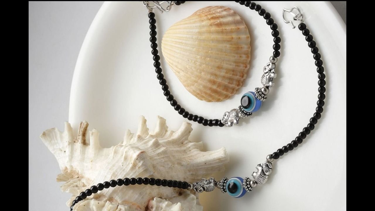 पैरों में काले धागे की बजाए आप ऐसे Latest Silver Black Beads Anklets Designs पहन सकती हैं। इनमें ईवल आई (Evil eye)वाली डिजाइन इन दिनों ट्रेंड में है।