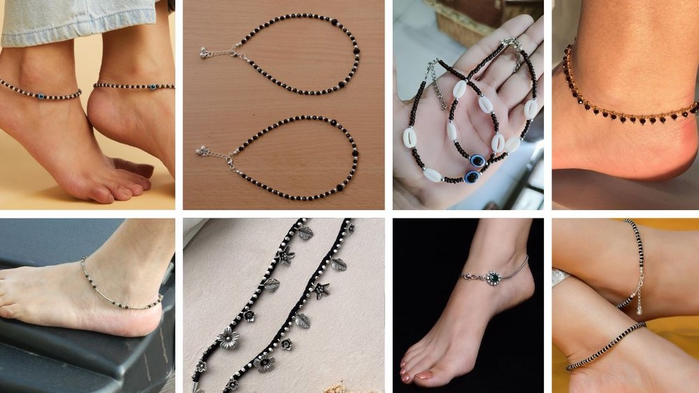 पैरों में काले धागे की बजाए आप ऐसे Latest Silver Black Beads Anklets Designs पहन सकती हैं। इनमें ईवल आई (Evil eye)वाली डिजाइन इन दिनों ट्रेंड में है।