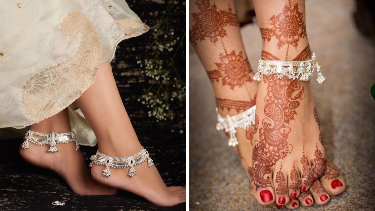 यह पायल फेस्टिव और ब्राइडल दोनों मौकों के लिए परफेक्ट है। इसमें लगी छोटी-छोटी झुंबर और पतली चांदी की कारीगरी इसे खास बनाती है। नई नवेली दुल्हनें इसे आसानी से घर पर पहन सकती हैं।