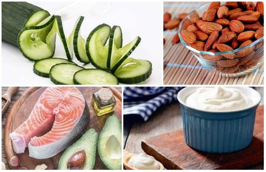 खीरा – खीरे में पर्याप्त मात्रा में पानी होता है साथ ही इसमें विटामिन ए, विटामिन सी आदि एंटी-ऑक्सीडेंट्स भी होते हैं। खीरे का सेवन करने से त्वचा का लचीलापन बना रहता है और त्वचा हाइड्रेट रहती है। रुखी त्वचा को पोषण देने के लिए खीरे का सेवन करना चाहिए।