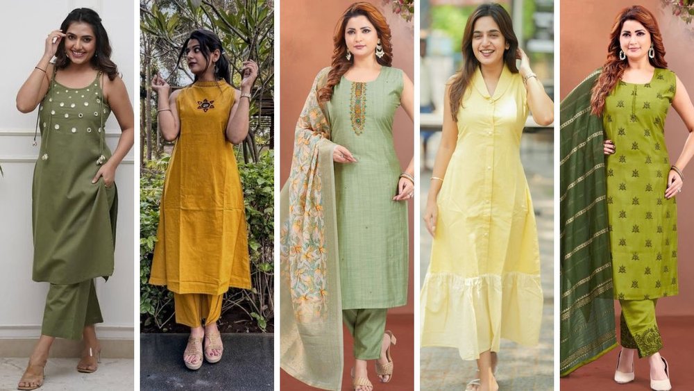 अगर आप ट्रेंडी और सिंपल स्लीवलेस कुर्ती की तलाश में हैं, तो आप इसे ट्राई कर सकती हैं। यह सावन के मौसम के लिए एकदम परफेक्ट है। हल्के और ठंडे रंग इन कुर्तियों को और भी आकर्षक बनाते हैं।