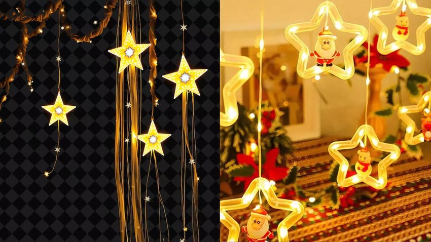 स्टार लाइट वाले पर्दे लगाएं-Star light curtain Christmas decoration