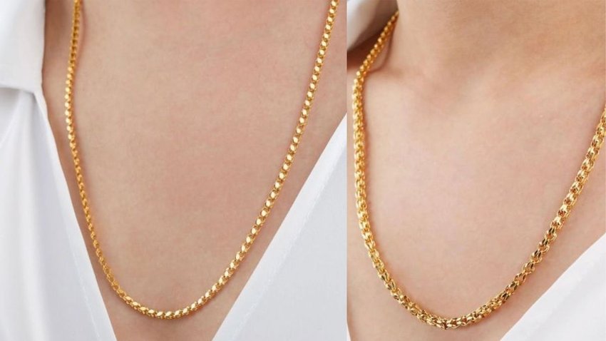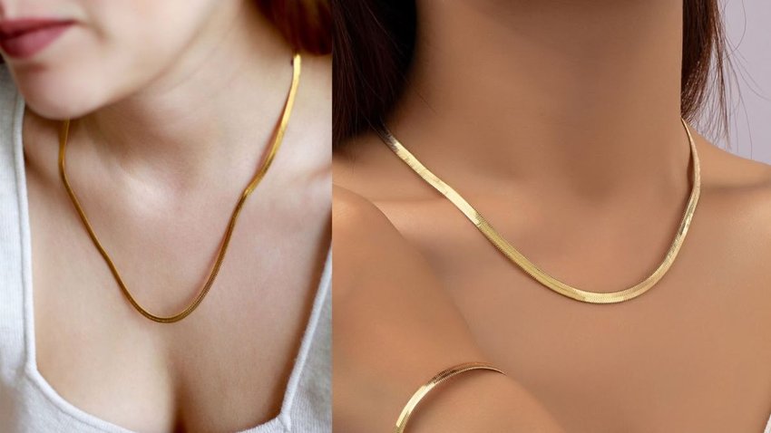 फ्लैट हॉक चेन भी आप किसी भी ड्रेस के साथ मैच कर सकती हैं। इसका चौड़ा और चिकना लुक बेहद एलिगेंट और रिच बनाता है। यह चेन बिना किसी अतिरिक्त पेंडेंट या बीड्स के भी आकर्षक लगती है और इसकी चमक पहनने वाले के लुक में चार चांद लगा देती है।