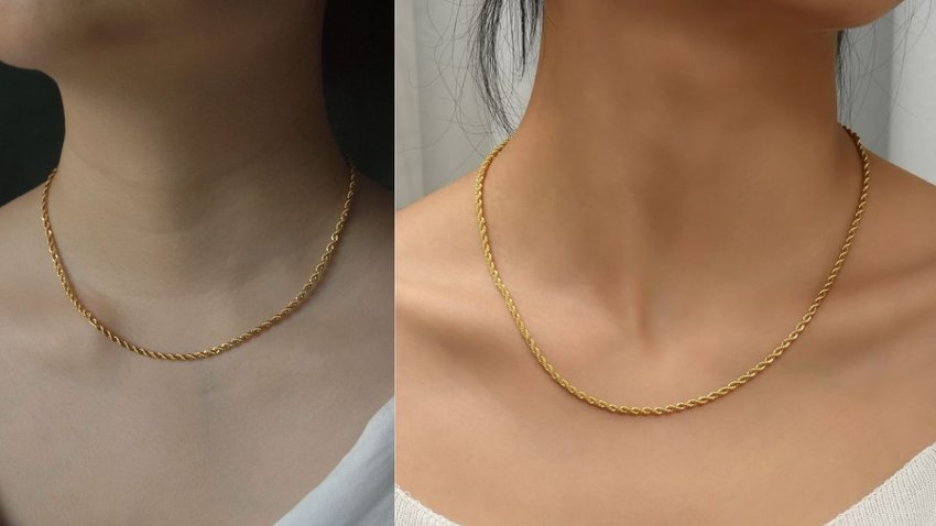 आप क्लासिक रॉप चेन डिजाइन को भी एक ऑप्शन के तौर पर ट्राई कर सकती हैं। इसकी गहराई और चमक को और भी बढ़ा देती है। यह चेन थोड़ी हेवी लुक देती है और ट्रेडिशनल वेस्टर्न दोनों पहनावों के साथ खूब जंचती है।