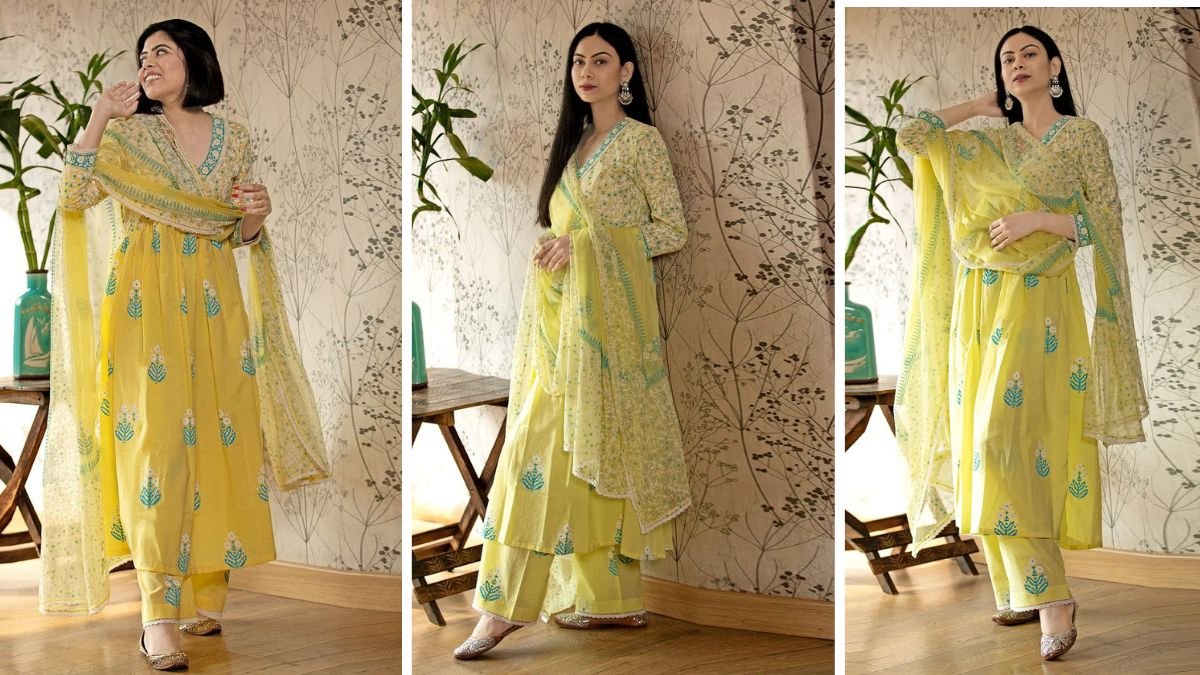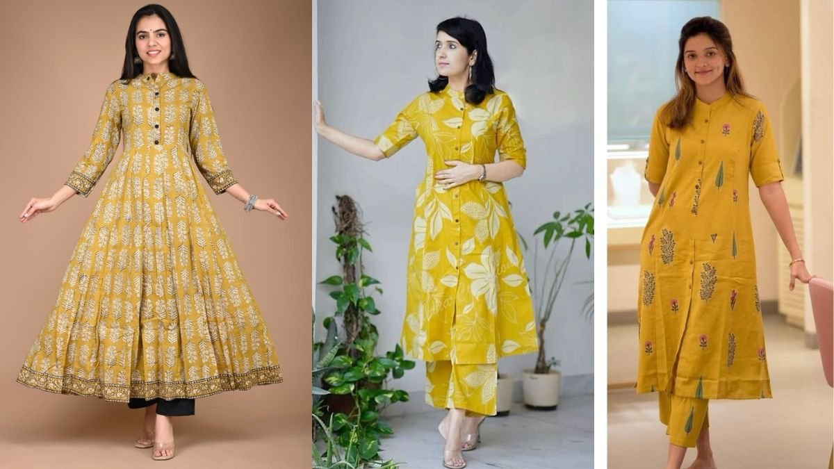 Yellow Floral Print Kurta Set For Women: पूरे देश में गणेश चतुर्थी का त्योहार धूमधाम से मनाया जाता है। इस साल गणेश चतुर्थी का पर्व 27 अगस्त को मनाया जाएगा। ऐसे में अभी से ही मार्केट में चारों ओर रौनक देखने को मिल रही है। इस खास दिन पर लोग नए कपड़े पहनते हैं और पारंपरिक परिधान में तैयार होते हैं। वहीं, इस दिन महिलाएं पूजा के साथ-साथ अपने लुक पर भी खास ध्यान देती हैं।