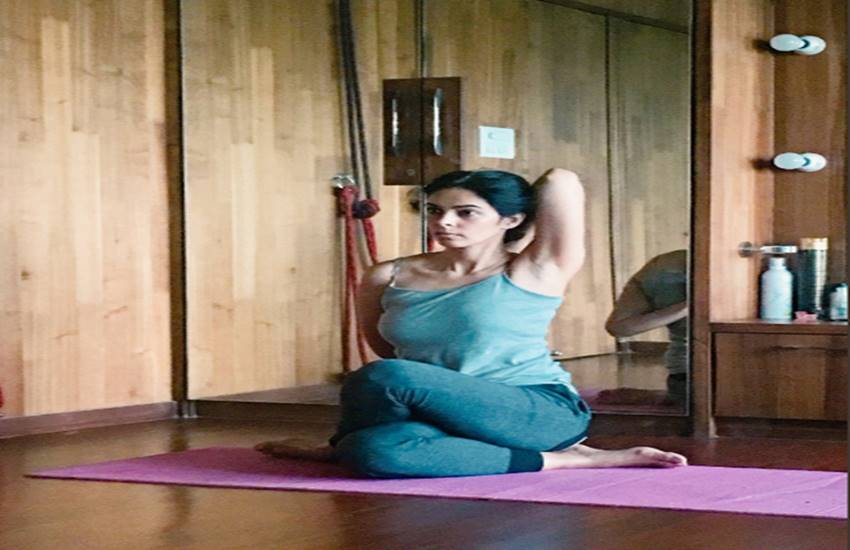 सबसे पहले दोनों पैरों को आगे की तरफ करते हुए बैठ जाएं और हाथों को बगल में जमीन पर रखें। अब दाएं पैर को घुटने से मोड़ें। यही प्रक्रिया दूसरे पैर से भी करें। अब बाई हाथ को उठाते हुए कोहनी को मोड़ें और ऊपर की तरफ ले जाते हुए पीछे कंधे पर रखें। कोशिश करें की आप आगे की तरफ हीं देखें। पैरों और हाथों को बदलते हुए इस प्रक्रिया को दोहराएं।