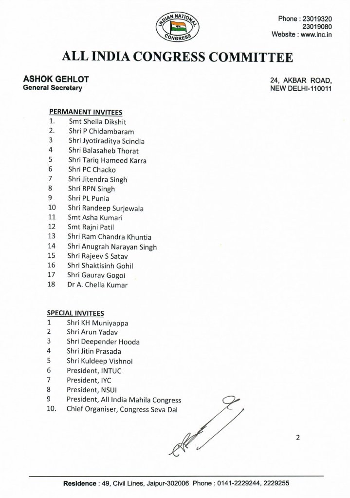 राहुल के नेतृत्व वाली इस सीडब्ल्यूसी में अनुभवी के साथ युवा नेताओं को भी जगह दी गई है। कमेटी में कुल 23 सदस्य, 19 स्थाई आमंत्रित सदस्य और नौ आमंत्रित सदस्य हैं। जर्नादन द्विवेदी के अलावा दिग्विजय सिंह, कमल नाथ, सुशील कुमार शिंदे, मोहन प्रकाश और सीपी जोशी सरीखे पार्टी के वरिष्ठ नेताओं के नाम इस वर्किंग कमेटी में नहीं हैं।
