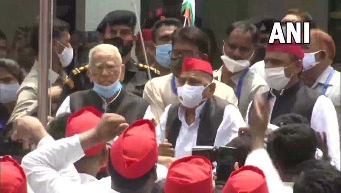 उत्तर प्रदेश: समाजवादी पार्टी नेता मुलायम सिंह यादव ने 75वें स्वतंत्रता दिवस के मौके पर लखनऊ में पार्टी दफ़्तर में राष्ट्रीय ध्वज फहराया। इस दौरान उनके साथ अखिलेश यादव भी मौजूद रहे।