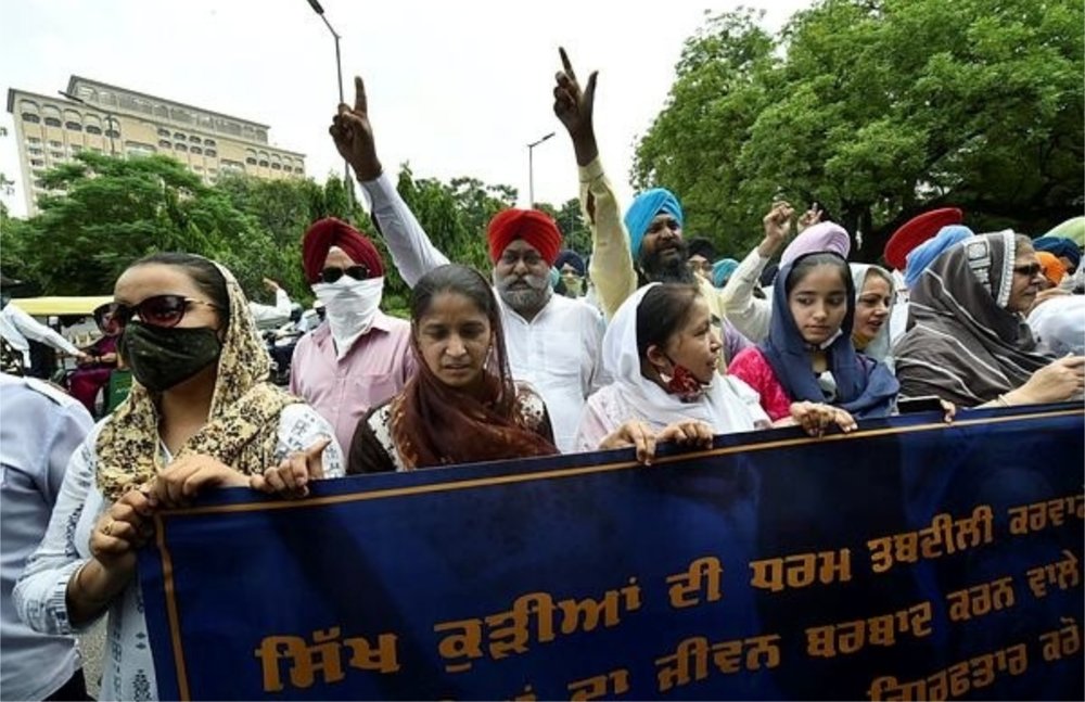 बता दें कि कश्मीर में दो सिख लड़कियों के धर्मांतरण के मामले को लेकर हंगामा मचा हुआ है। सिख समुदाय के लोगों का आरोप है कि बंदूक की नोक पर दोनों लड़कियों का अपहरण किया गया और जबरन धर्मांतरण करवा दिया, फिर अधेड़ उम्र के मुस्लिम शख्स से उसका निकाह करा दिया गया। इसी मुद्दे को लेकर सिख समुदाय के लोगों ने श्रीनगर में प्रदर्शन किया। सिख समुदाय के लोगों ने गृहमंत्री अमित शाह से इस मामले में कार्रवाई करने की मांग की है।