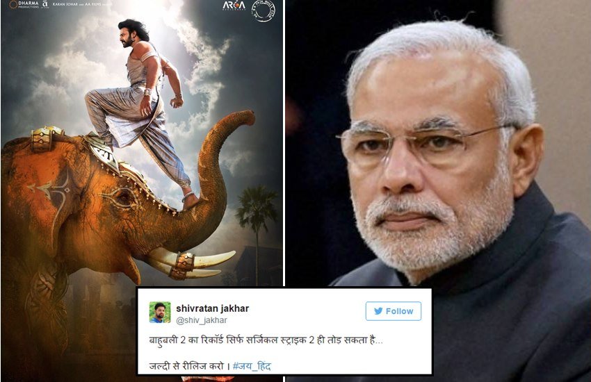 यकीन मानिए देश #बाहुबली के साथ एक सर्जिकल स्ट्राइक भी देखना चाहता है। pic.twitter.com/zwIQ6GWj4i— Vijay ?Ð (@realvijay_) May 2, 2017