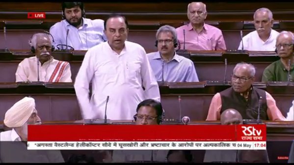 वीवीआईपी हेलिकॉप्‍टरों की खरीद से जुड़े कथित घोटाले का मामला बुधवार को संसद में गर्माया रहा। इस मुद्दे पर हो रही चर्चा के दौरान बीजेपी नेता सुब्रह्मण्‍यम स्‍वामी ने यूपीए और कांग्रेस पर जमकर निशाना साधा। स्‍वामी के संबोधन के दौरान कई बार हंगामा भी हुआ।