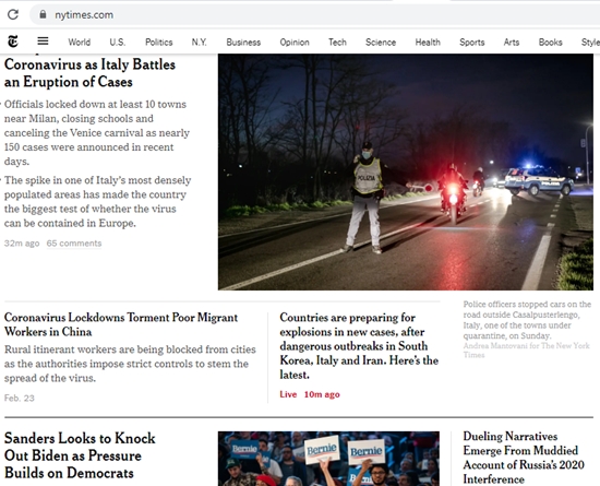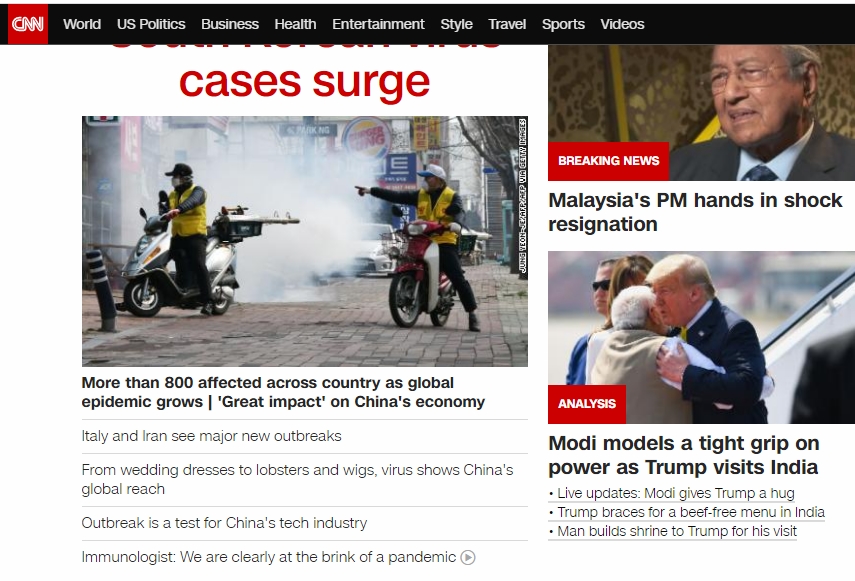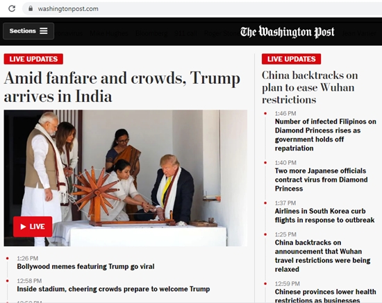 अमेरिका के प्रमुख मीडिया वेबसाइट के होम पेज के स्क्रीन शॉट नीचे दिखाए गए हैं, जिनमें सिर्फ वॉशिंगटन पोस्ट को छोड़कर बाकी में डोनाल्ड ट्रम्प के भारत दौरे से संबंधी खबरें प्रमुखता से नहीं दिखाई दे रही हैं।