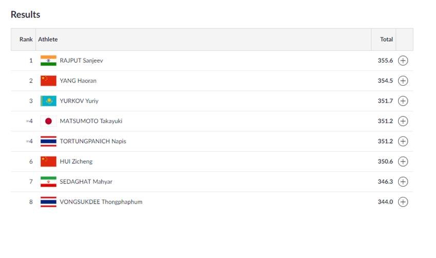 भारतीय शूटर संजीव राजपूत 50 मीटर एयर पिस्टल 3-पोजिशन प्रतियोगिता के फाइनल में शानदार प्रदर्शन करते हुए पहले स्थान पर काबिज हैं।