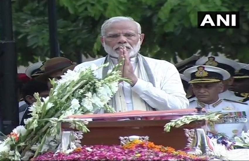 प्रधानमंत्री नरेंद्र मोदी के अलावा राष्ट्रपति रामनाथ कोविंद, रक्षा मंत्री निर्मला सीतारमण, लोकसभा की अध्यक्ष सुमित्रा महाजन ने भी पूर्व पीएम के पार्थिव शरीर को आखिरी विदाई दी।