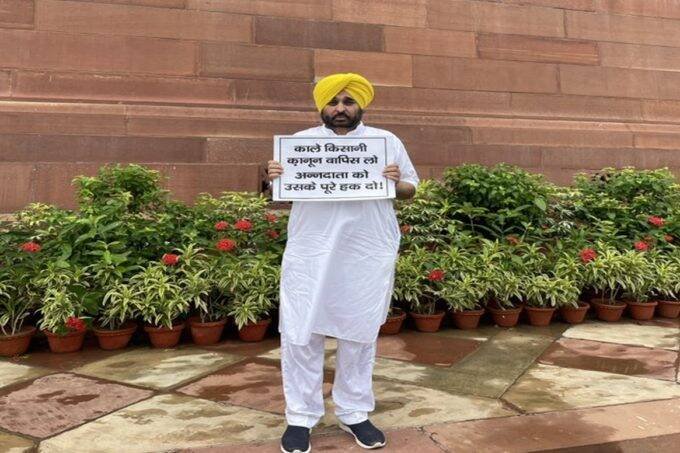 तीन कृषि कानूनों को लेकर चल रहा आंदोलन फिलहाल जारी है। विपक्षी दल और नेता इसके खिलाफ संसद और संसद के बाहर लगातार बयान देकर इस मुद्दे को जीवित रखे हुए हैं। दिल्ली की सीमाओं पर भी किसान डटे हुए हैं। साथ ही किसान संगठन अपने-अपने स्तर पर भी बैठकें, धरना-प्रदर्शन कर रहे हैं। दिल्ली के जंतर मंतर पर भी किसान धरना जारी रखे हैं। इन सबके बीच आम आदमी पार्टी के नेता और संगरूर से सांसद भगवंत मान संसद भवन के बाहर अकेले पोस्टर लेकर खड़े रहे।