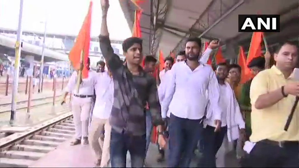 पटना के राजेंद्र नगर टर्मिनल रेलवे स्टेशन पर प्रदर्शनकारियों ने हंगामा किया।