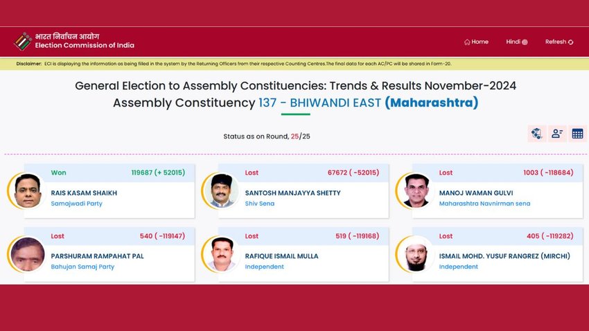 भिवंडी पूर्व सीट पर जीत की ओर समाजवादी पार्टी